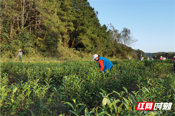 茶園坪村村民在茶園鋤草。