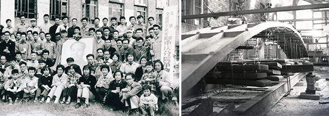 60年代建院初期職工合影60年代老辦公樓邊搭棚做橋梁模型試驗(yàn)