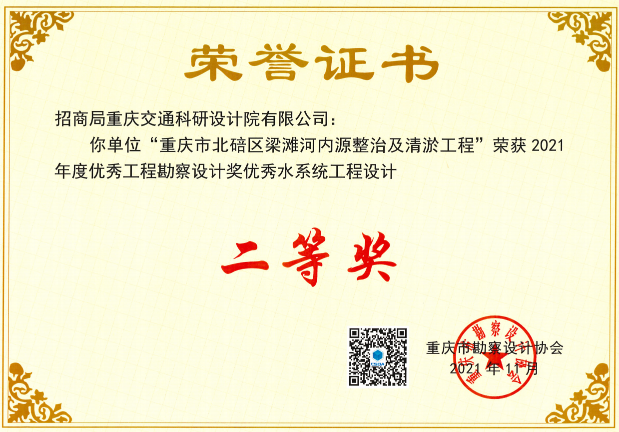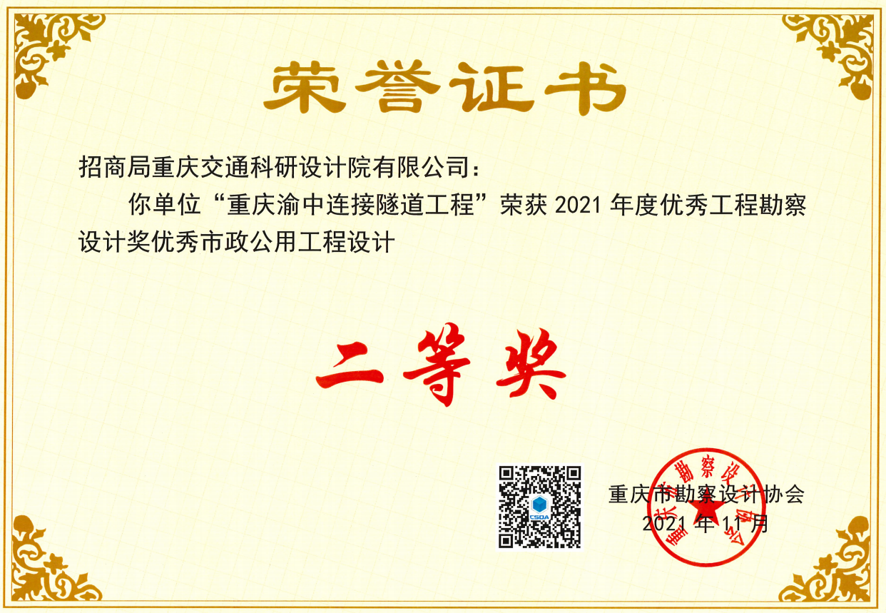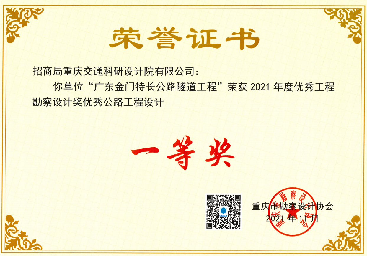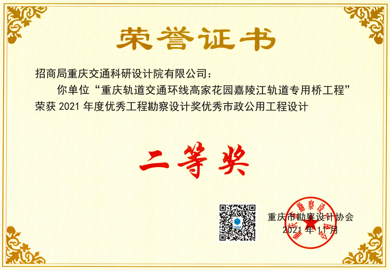招商交科榮獲6項(xiàng)2021年度重慶市勘察設(shè)計協(xié)會優(yōu)秀設(shè)計獎