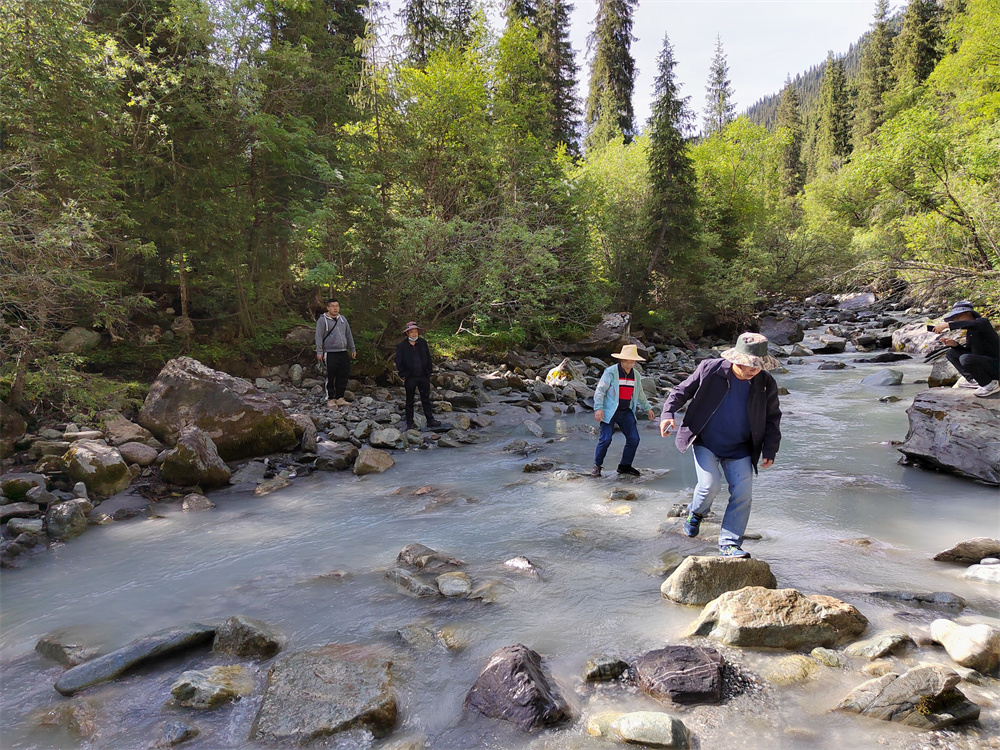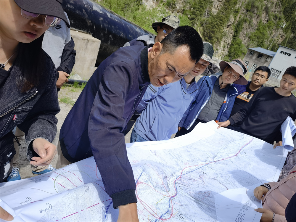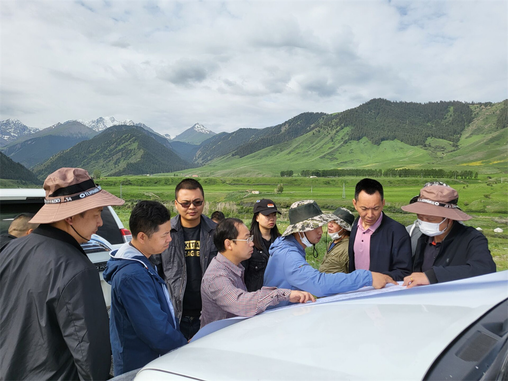 緊接著,項目組一行按規(guī)定隔離14天,為了不耽誤工作,隔離期間,項目組人員臨時搭了一個辦公室,抓緊時間開展前期工作。主動與地勘單位接頭,就勘察的數(shù)據(jù)進行了認真討論,并根據(jù)業(yè)主要求做好方案調(diào)整。隔離期結(jié)束后,項目組立即進入了踏勘工作,攀崖涉水,走泥路,鉆樹叢,雖然是萬物復(fù)蘇的五月,遠處卻是白雪皚皚的天山。雪山之下,寒風(fēng)刺骨。時而大雨傾盆雷聲陣陣,時而驕陽似火炙熱灼灼,讓人深切體會到了那句老話——“早穿棉襖午穿紗,圍著火爐吃西瓜”。
