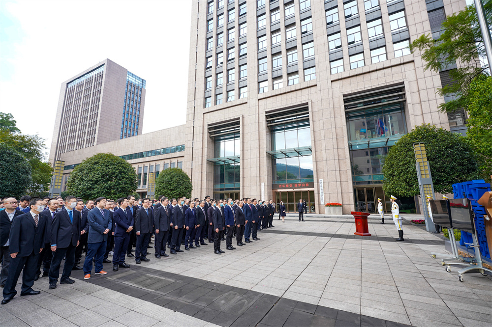 上午9時05分,招商交科在交科院廣場舉行了升旗儀式。領導班子,各部門及單位的員工代表300余人,齊聚現(xiàn)場。參加人員共同收看了集團董事長繆建民公司日講話視頻,公司董事長劉偉講話,總經(jīng)理楊國峰主持儀式。