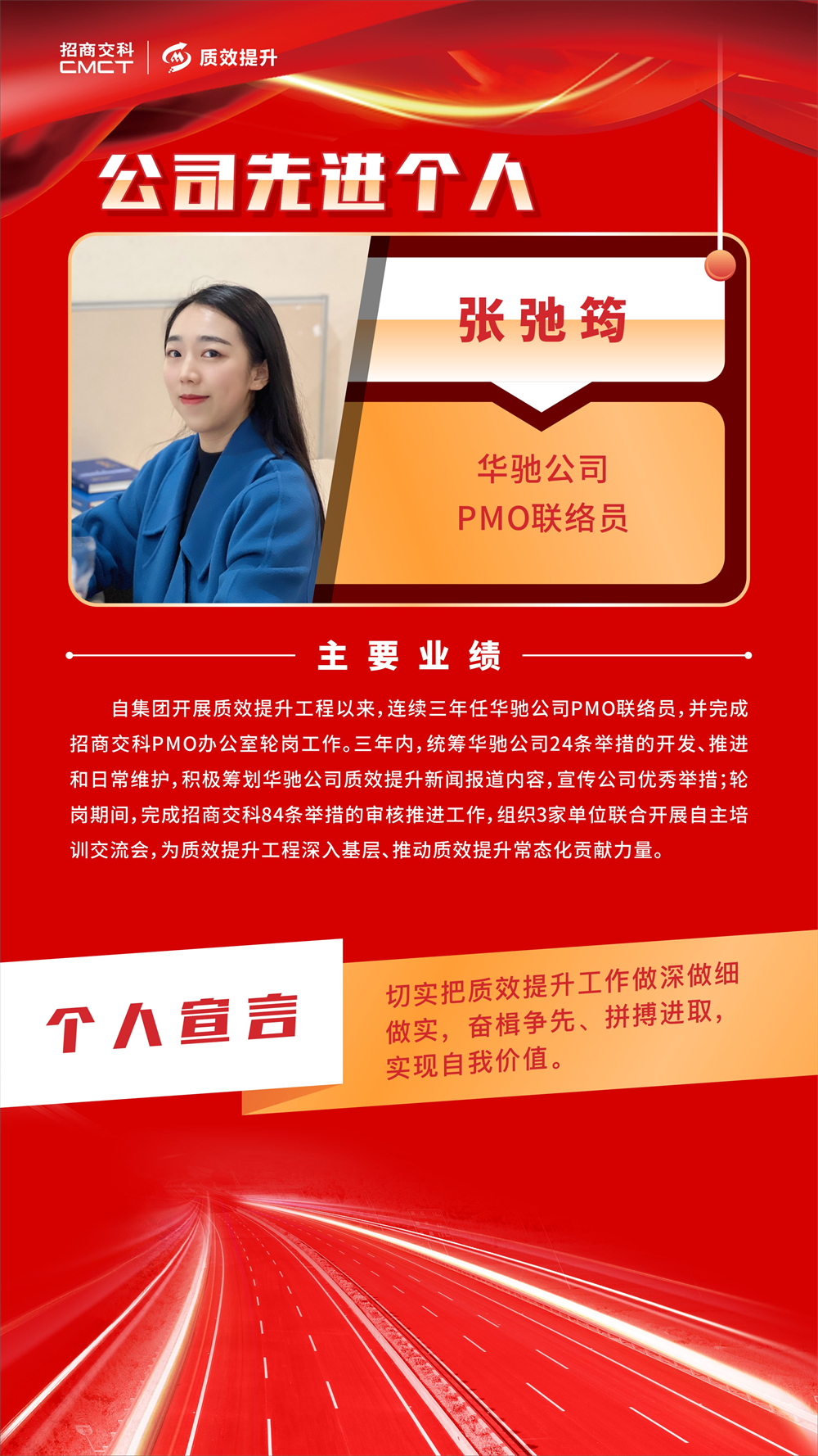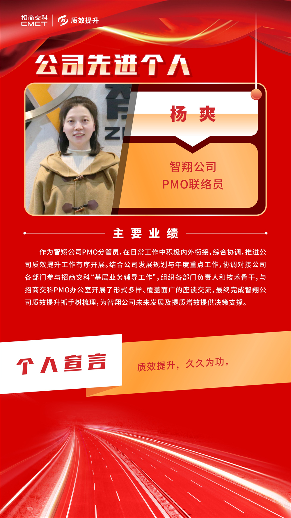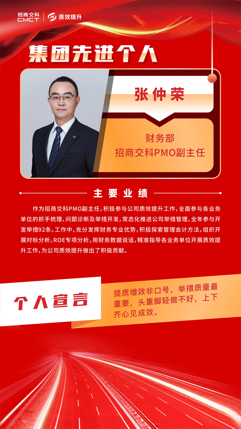 ? 各部門和單位要以先進單位、先進個人為榜樣,堅定不移推動質(zhì)效提升工作走深走實,助力招商交科高質(zhì)量發(fā)展。