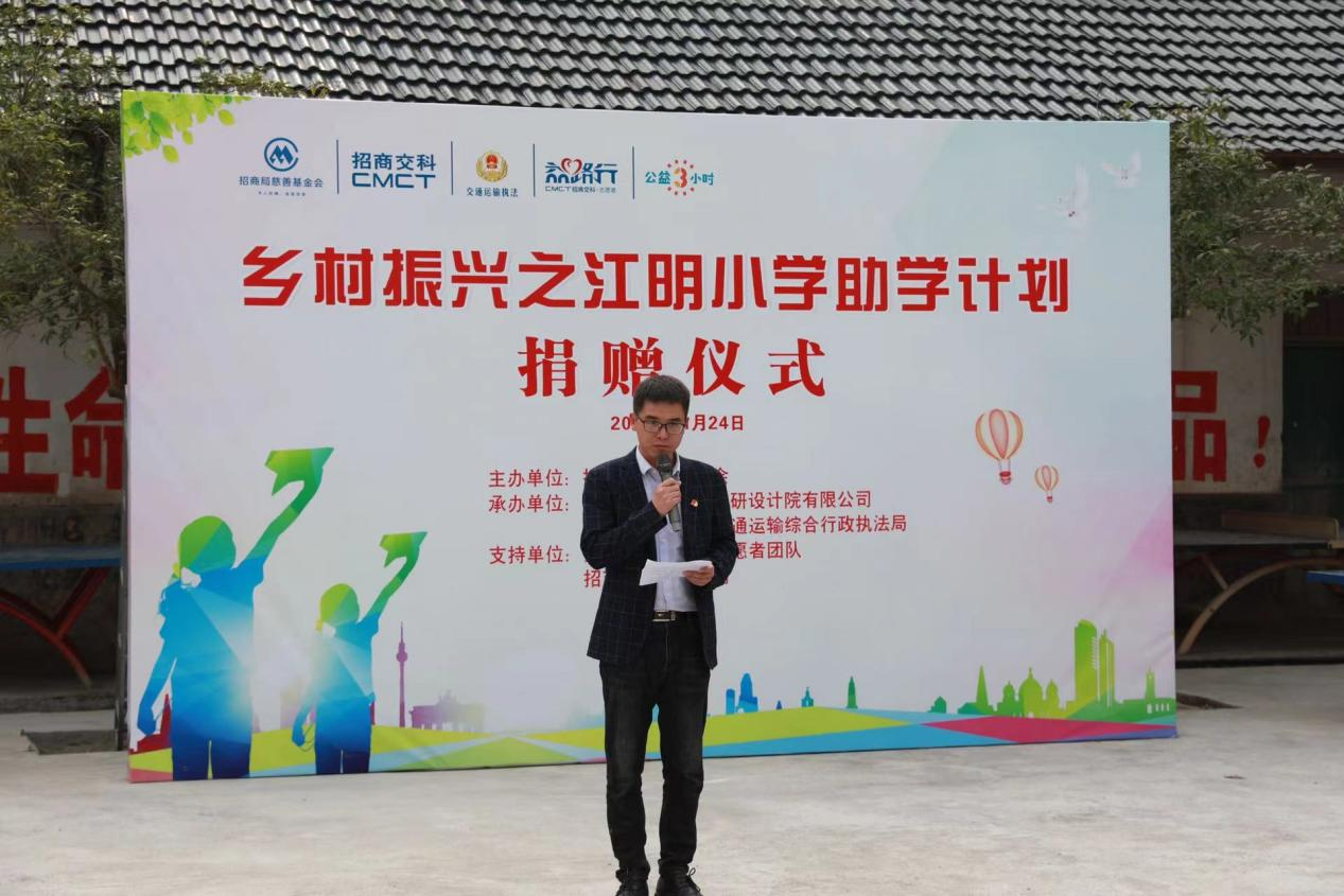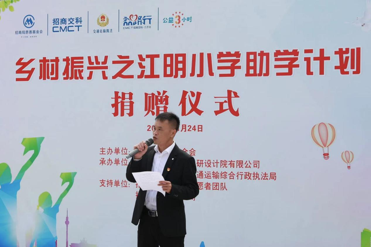 彭金濤在捐贈儀式致辭中表示,經(jīng)廣西交通執(zhí)法局推介和招商交科廣西分公司實地考察,江明小學(xué)助學(xué)項目得到招商局慈善基金會和招商交科的高度重視和大力支持,在征得校方同意后,先后為學(xué)校捐贈了一批急需教學(xué)物資和愛心書籍,希望以此為江明小學(xué)鄉(xiāng)村振興與校園助學(xué)貢獻綿薄之力,同時也期待這項“聯(lián)動一家親活動”能夠持續(xù)開展,讓學(xué)生在愛心V書屋中享受閱讀,在閱讀的過程中了解世界和培養(yǎng)良好的習慣。