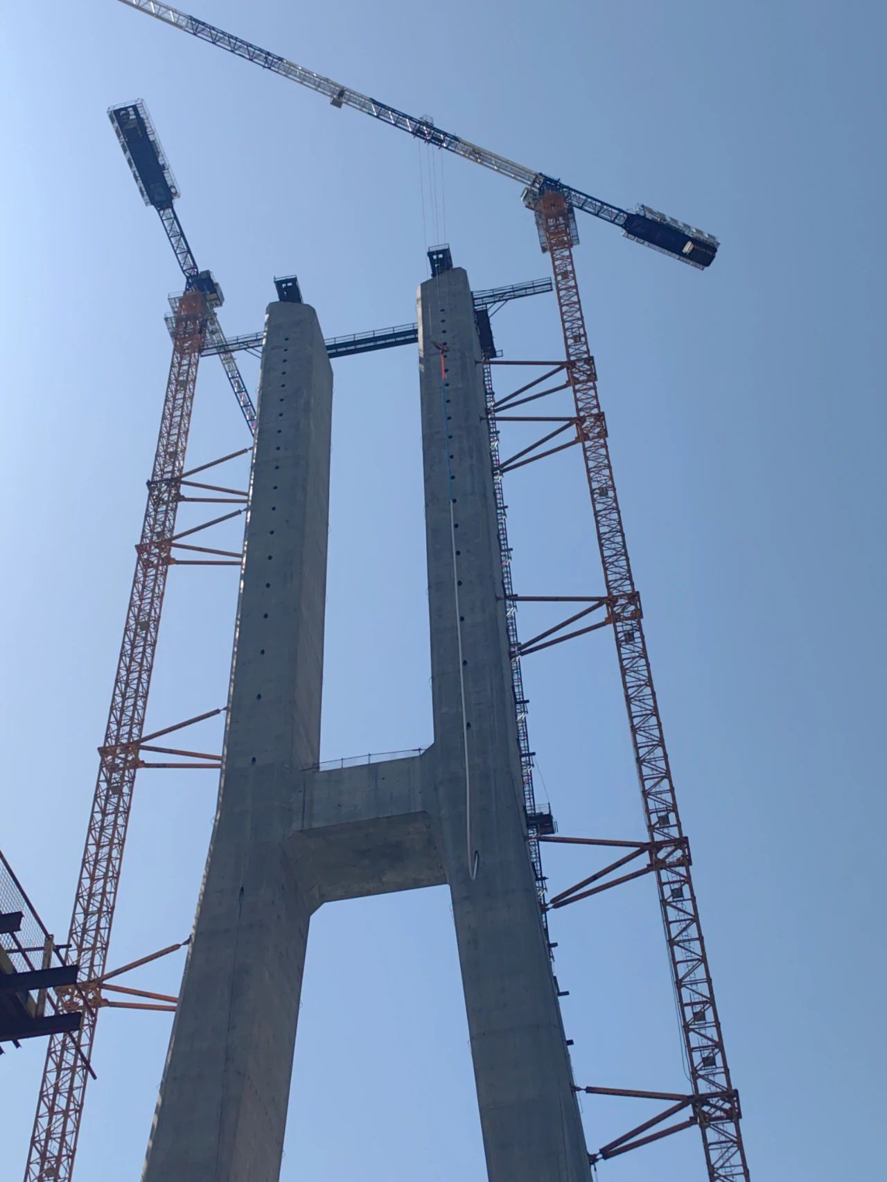 斜拉索安裝是上部結構的關鍵工程,為確保漢江特大橋首根斜拉索高質量安裝到位,萬橋公司組建了一支技術精湛、經驗豐富的纜索安裝團隊,配備精良的安裝設備。在施工準備階段,積極進行人員對接,細化設備管理,開展安全培訓與技術交底。在項目部的大力支持和參建各方的共同配合下,迅速解決影響現場安裝的各種問題,確保了首根斜拉索塔端掛設的順利完成,為項目建設按下“加速鍵”。
