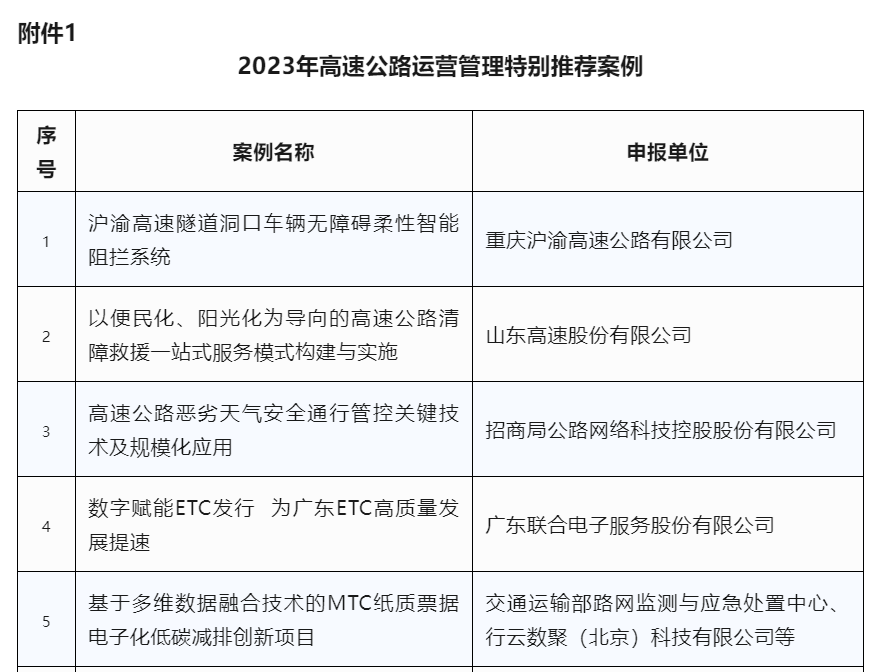 招商交科研發(fā)的國際首創(chuàng)專利技術(shù)榮居高速公路運營管理特別推薦案例榜首