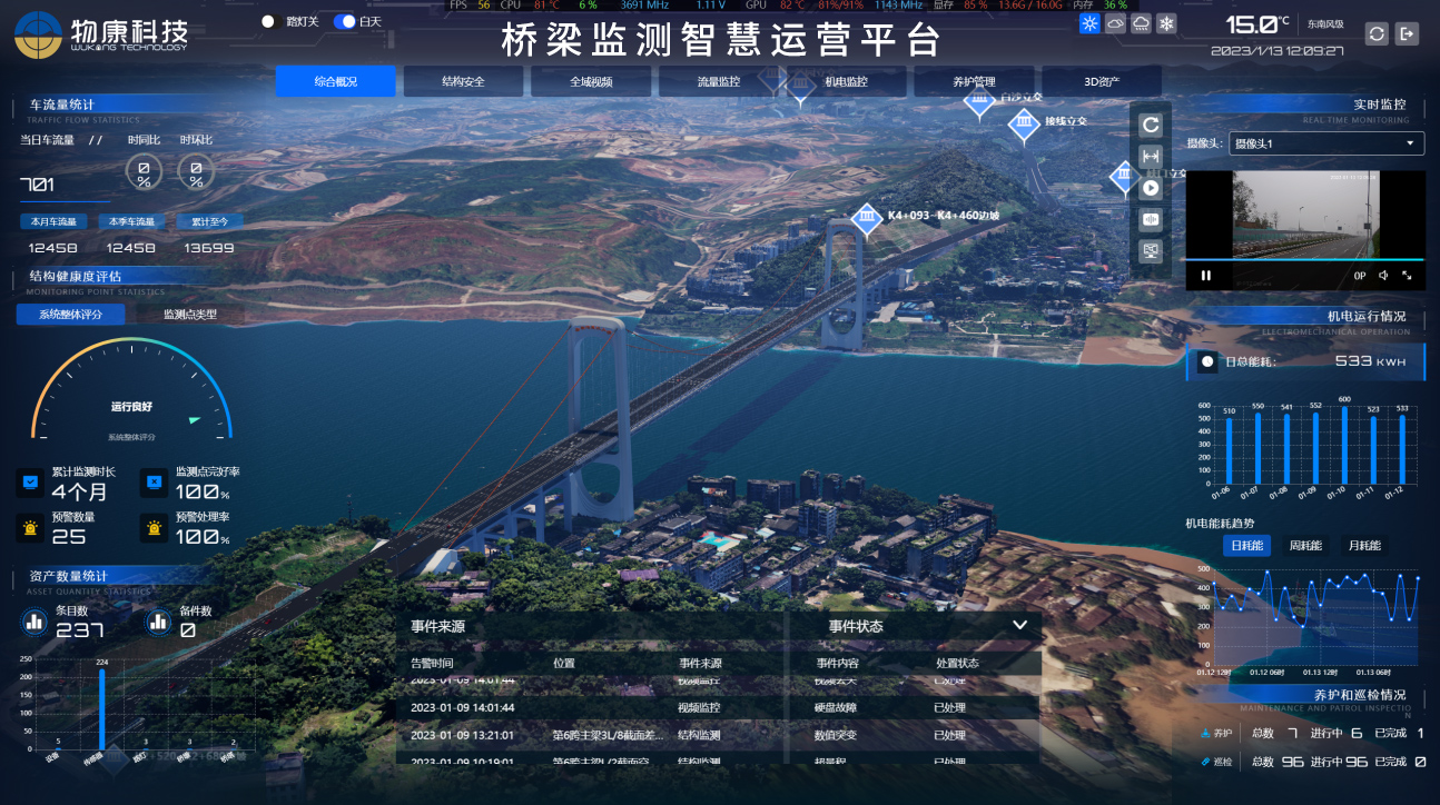 隨著技術(shù)的日益成熟和市場需求的不斷擴大,為了提供更專業(yè)、全面的監(jiān)測服務(wù),物康科技抓住國企改革機遇,于2021年6月28日揭牌成立。物康科技以“國家山區(qū)公路工程技術(shù)研究中心”等平臺為科研基地,創(chuàng)立“橋梁云”品牌,開發(fā)了一系列智能監(jiān)測軟件系統(tǒng)及硬件設(shè)備,掌握了監(jiān)測領(lǐng)域核心技術(shù),有力推動了結(jié)構(gòu)監(jiān)測產(chǎn)業(yè)發(fā)展。物康科技主持研究了“智慧橋梁狀態(tài)評定關(guān)鍵技術(shù)標準研究與示范應(yīng)用”國研項目,填補了智慧橋梁狀態(tài)評定方面的技術(shù)空白;首次提出基于云平臺的結(jié)構(gòu)監(jiān)測技術(shù)架構(gòu)和基于準靜態(tài)影響線的橋梁承載力快速評估方法;自主研發(fā)基于紅外熱成像、微波雷達、AIS等多源數(shù)據(jù)融合的超寬水域橋梁主動防撞監(jiān)控技術(shù)、橋梁結(jié)構(gòu)分析仿真系統(tǒng)、動態(tài)信號分析處理系統(tǒng)、橋梁結(jié)構(gòu)分析仿真軟件、監(jiān)測數(shù)據(jù)綜合采集硬件系統(tǒng)等。