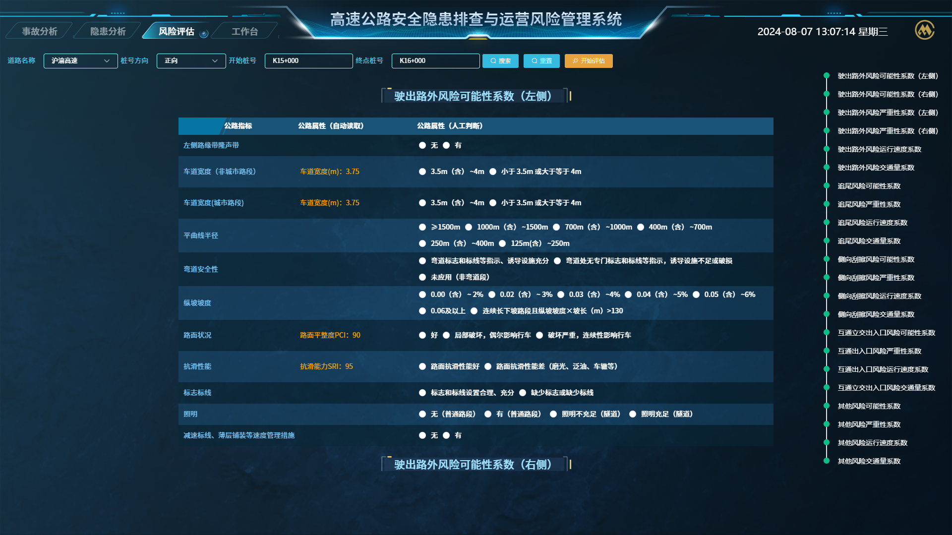 研發(fā)團(tuán)隊(duì)對(duì)高速公路運(yùn)營安全隱患進(jìn)行全面梳理、聚類分析,歸類為道路線形不良、視距不良、路面積水、排水設(shè)施缺陷等76種安全隱患,建立了《高速公路運(yùn)營安全隱患排查清單》,明確運(yùn)營安全隱患排查要點(diǎn)。通過系統(tǒng)建立運(yùn)營安全隱患電子臺(tái)賬,計(jì)算隱患嚴(yán)重指數(shù)并評(píng)估隱患等級(jí),輔助運(yùn)營管理人員制定運(yùn)營安全隱患排查計(jì)劃,大幅提升運(yùn)營安全隱患排查工作效率。