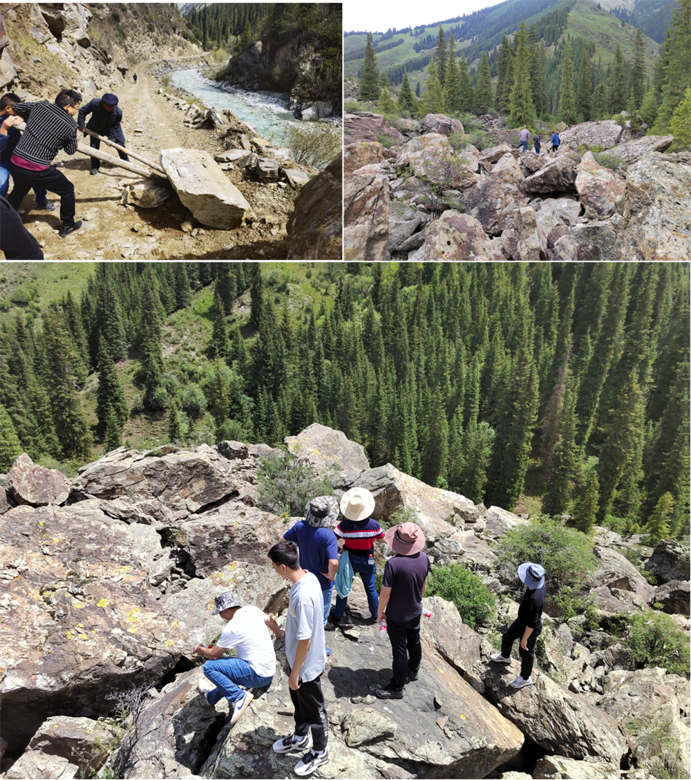 有一次,項目組來到巨石崩塌堆積體點位,大家在巨石堆中相互攙扶著小心前行。道路艱險,隨時有掉入石堆縫隙的危險,即使已經(jīng)很小心了,汪余波腿部還是被尖銳的石頭刮傷,考慮到時間緊迫,同時不想連累同行人員,他也只是簡單處理一下傷口繼續(xù)前行。