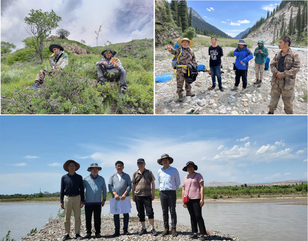 一天早飯后,踏勘隊伍向目標方向前進。大概中午時分,東都果爾薩依河河道突然漲水,巖石雜陳,水勢兇險。根據(jù)現(xiàn)場判斷,如果繞路前行,大概需要花費一天時間,當天的踏勘工作就沒法完成。為順利完成任務,大家決定涉水前行。剛一入腳,一個個又很快“彈”回到岸上,口中不由得叫道:“水怎么這樣涼!”原來,河里的水由天山雪水消融匯集而成,水溫極低,即便夏日午后也冰涼刺骨。有了初次涉水的心里建設,一個個鼓起勇氣再次入水。順利渡河后,顧不上被打濕的鞋子衣服,趕緊投入到現(xiàn)場工作中。
