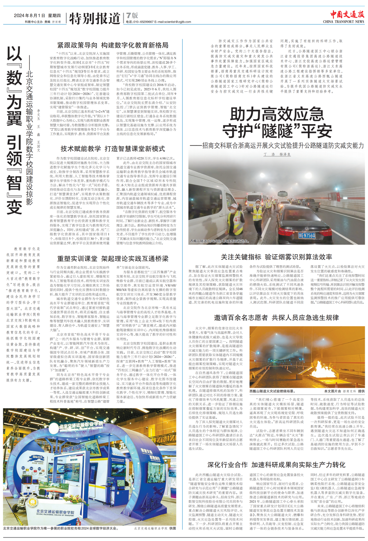8月1日,《中國交通報》“特別報道”刊發(fā)了《助力高效應(yīng)急 守護(hù)“隧隧”平安——招商交科聯(lián)合浙高運開展火災(zāi)試驗提升公路隧道防災(zāi)減災(zāi)能力》文章。在當(dāng)前國家高度重視公共安全與防災(zāi)減災(zāi)工作的背景下,公路隧道作為交通運輸?shù)闹匾ǖ?,其安全與防災(zāi)能力直接關(guān)系到人民群眾的生命財產(chǎn)安全。招商交科聯(lián)合多家單位,在浙江省義東高速公路西甑山隧道開展了一系列火災(zāi)試驗,旨在提升我國公路隧道防災(zāi)減災(zāi)水平,守護(hù)公共安全?,F(xiàn)將全文轉(zhuǎn)載如下: