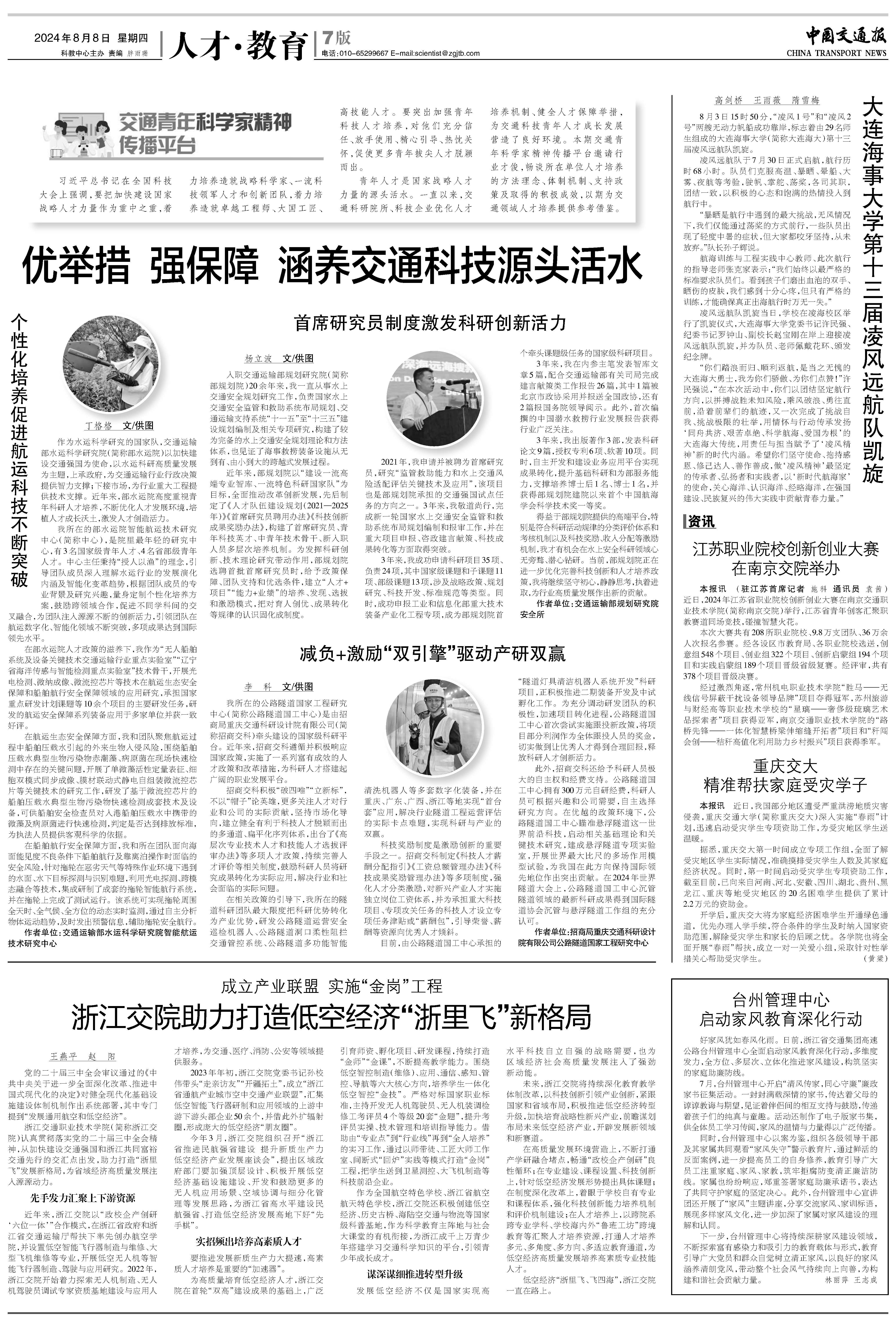 8月8日,《中國(guó)交通報(bào)》在第七版“人才·教育”專(zhuān)欄中,以《減負(fù)+激勵(lì)“雙引擎”驅(qū)動(dòng)產(chǎn)研雙贏》為題,刊發(fā)了招商交科公路隧道國(guó)工中心李科研究員的署名文章,談到了招商交科在人才政策與激勵(lì)機(jī)制上的創(chuàng)新舉措。面對(duì)“破四唯”“立新標(biāo)”的時(shí)代要求,招商交科聚焦人才的實(shí)際貢獻(xiàn)與行業(yè)價(jià)值,通過(guò)建立健全多通道、扁平化的序列體系,以及出臺(tái)一系列合理的人才政策,為科技人才搭建廣闊的職業(yè)發(fā)展舞臺(tái),激發(fā)科研人員的創(chuàng)新活力與潛能?,F(xiàn)將全文轉(zhuǎn)載如下: