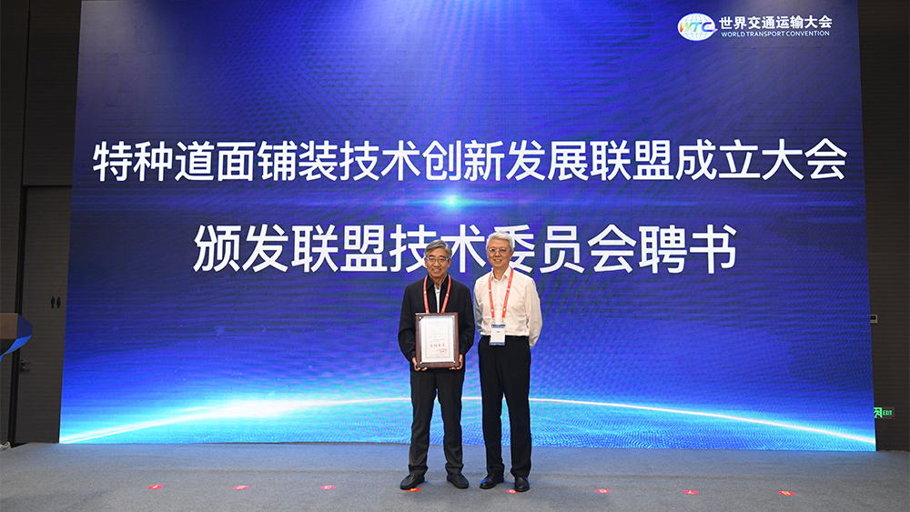 在第一屆年會上,劉文杰、鄭健龍、王福敏等共同為聯(lián)盟成立揭牌。劉文杰代表中國公路學(xué)會發(fā)表賀詞,鄭健龍和王福敏分別致辭。聯(lián)盟各成員單位代表和聯(lián)盟技術(shù)委員會委員上臺領(lǐng)取聘書。會議由招商交科總經(jīng)理助理張華主持。